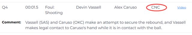 第二个回合发生在距离比赛结束还有1.5秒,卡鲁索触球后第一时间出手不中,随后摔出底线。他认为防守他的瓦塞尔有犯规动作,裁判报告指出,瓦塞尔与卡鲁索同时拼抢篮板,瓦塞尔在卡鲁索手部触球的瞬间,与其手部发生了一次合理身体接触。